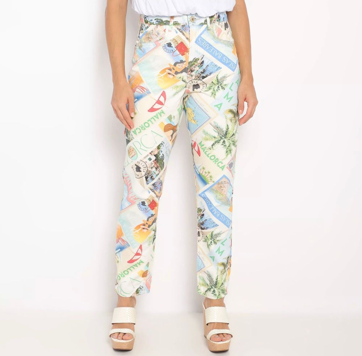 Calça Reta Com Inscrições. - Branca & Azul - 38